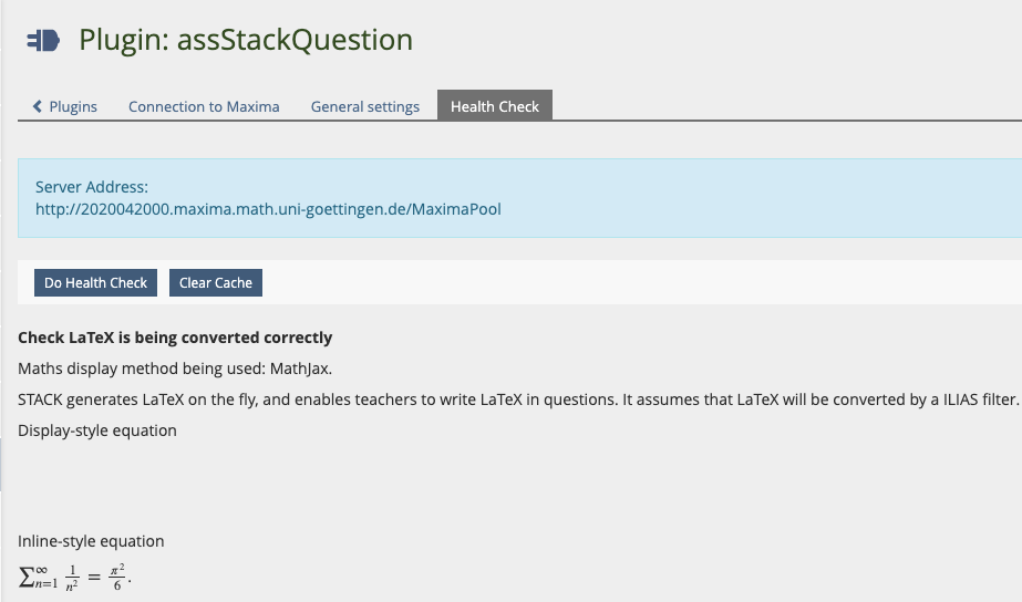 - Server Address (example for ILIAS 6 and Maxima version 5.41.0:Â http://2020042000.maxima.math.uni-goettingen.de/MaximaPool