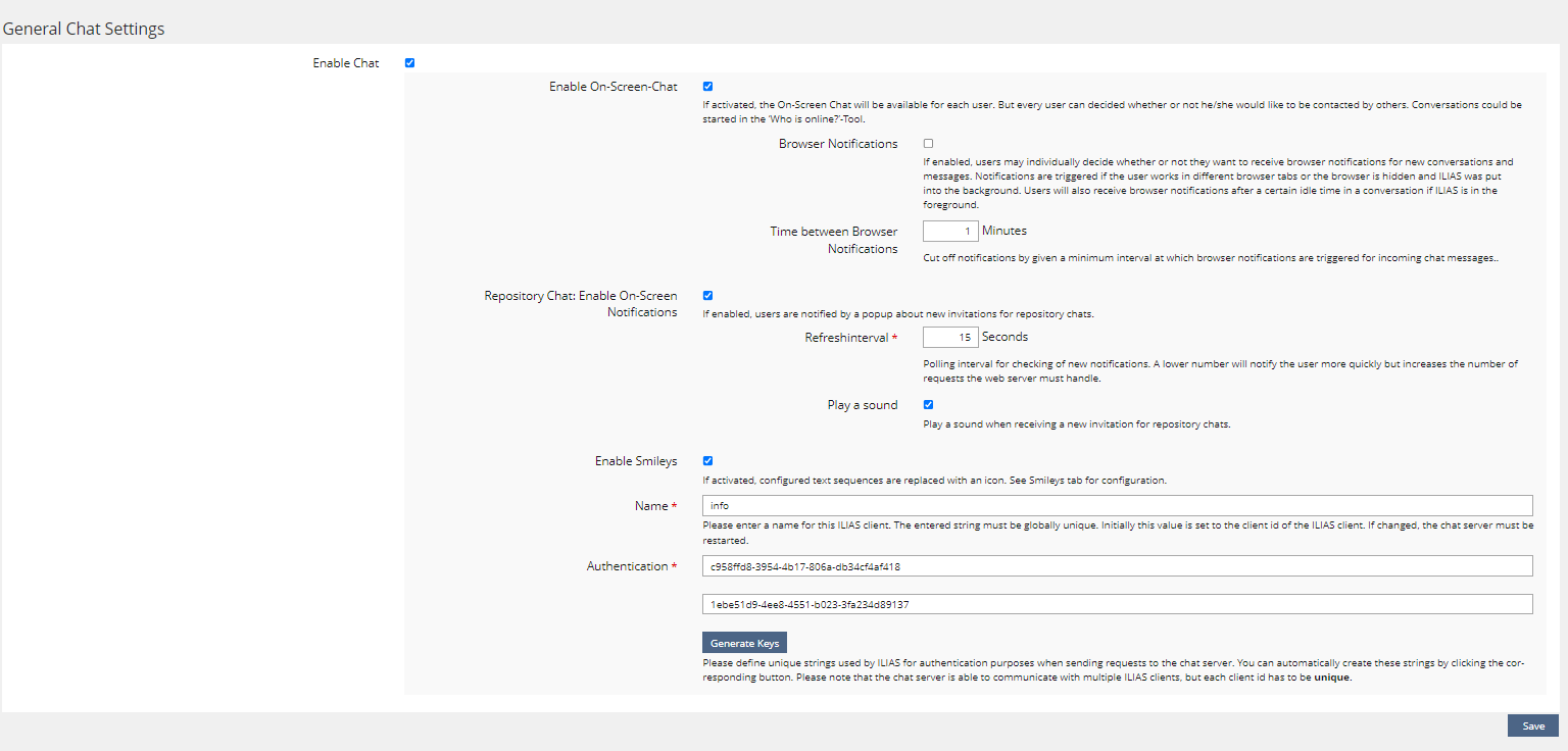 - You have now a fresh client.cfg in the directory /opt/iliasdata/clientname/chatroom